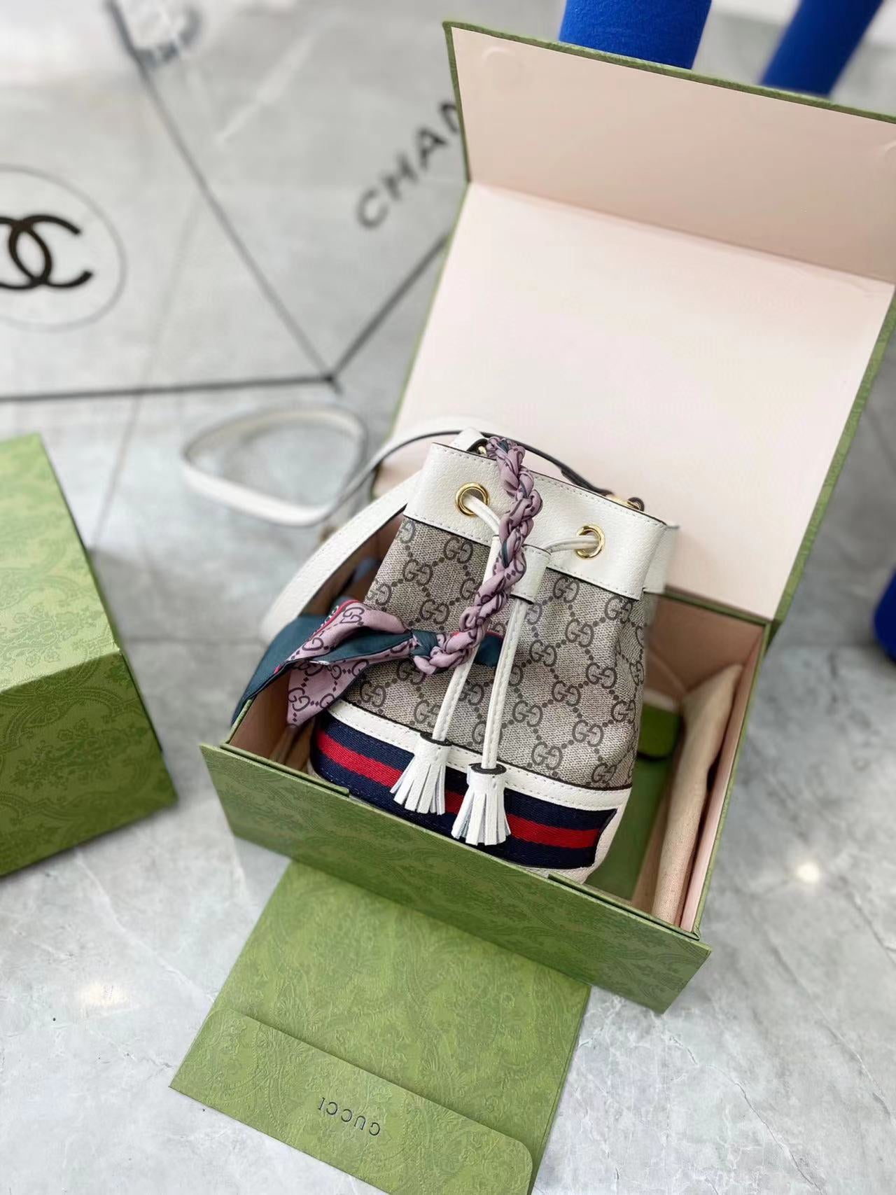 All bags come with dust bag, what is shown in the photo is what you will receive. Size 16 x 18cm