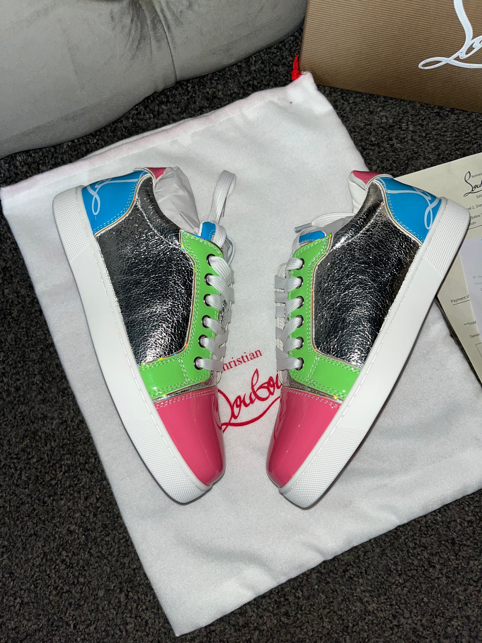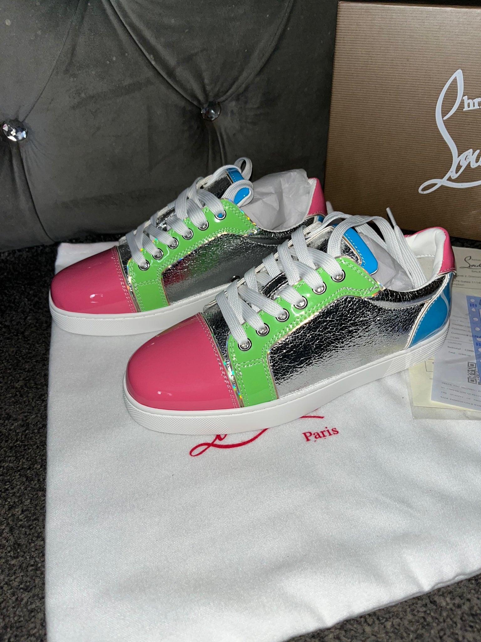 • Load image into Gallery viewer, Colourful Red Bottomed Trainers
